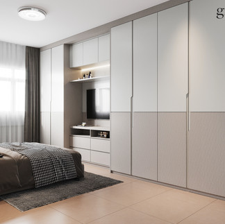 The overall design is perfect. When light and neutral tones with subtle wood-coloured flooring and slightly darker-coloured furniture are brought together, it gives the whole interior a statement look while keeping it serene and calm. This is accomplished by taking a minimalistic approach to the decoration of the space, that is keeping the decorations to a minimum and combined with a muted colour theme.